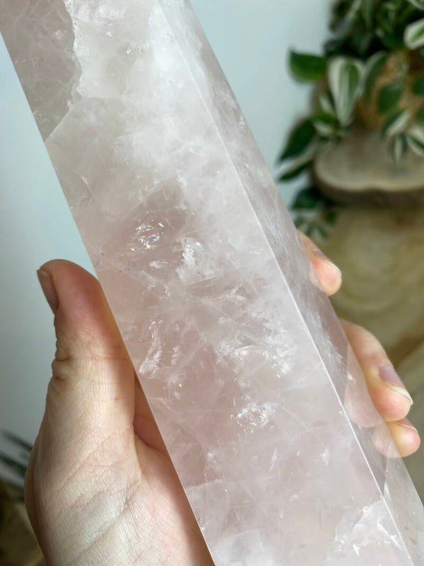 Großer Rosenquarz Turm 29,5cm mit vielen Regenbögen