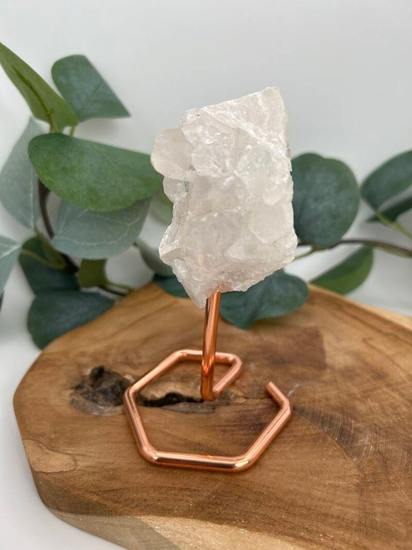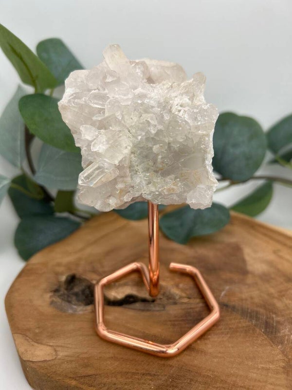 Bergkristall Spitzen auf rosegoldenen Stand teilweise schöne Regenbögen