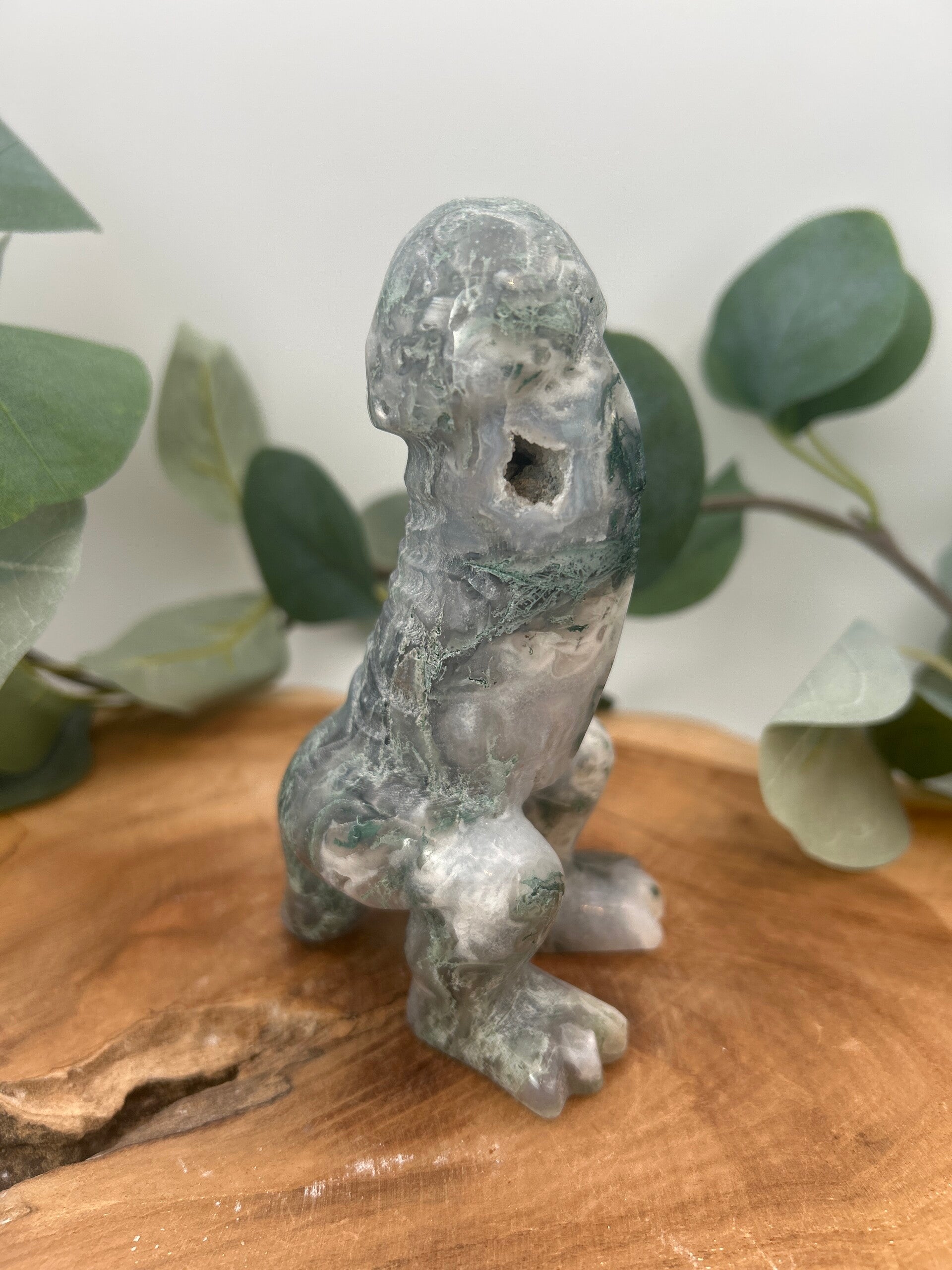 Dino Phallus aus Bergkristall und Moosachat