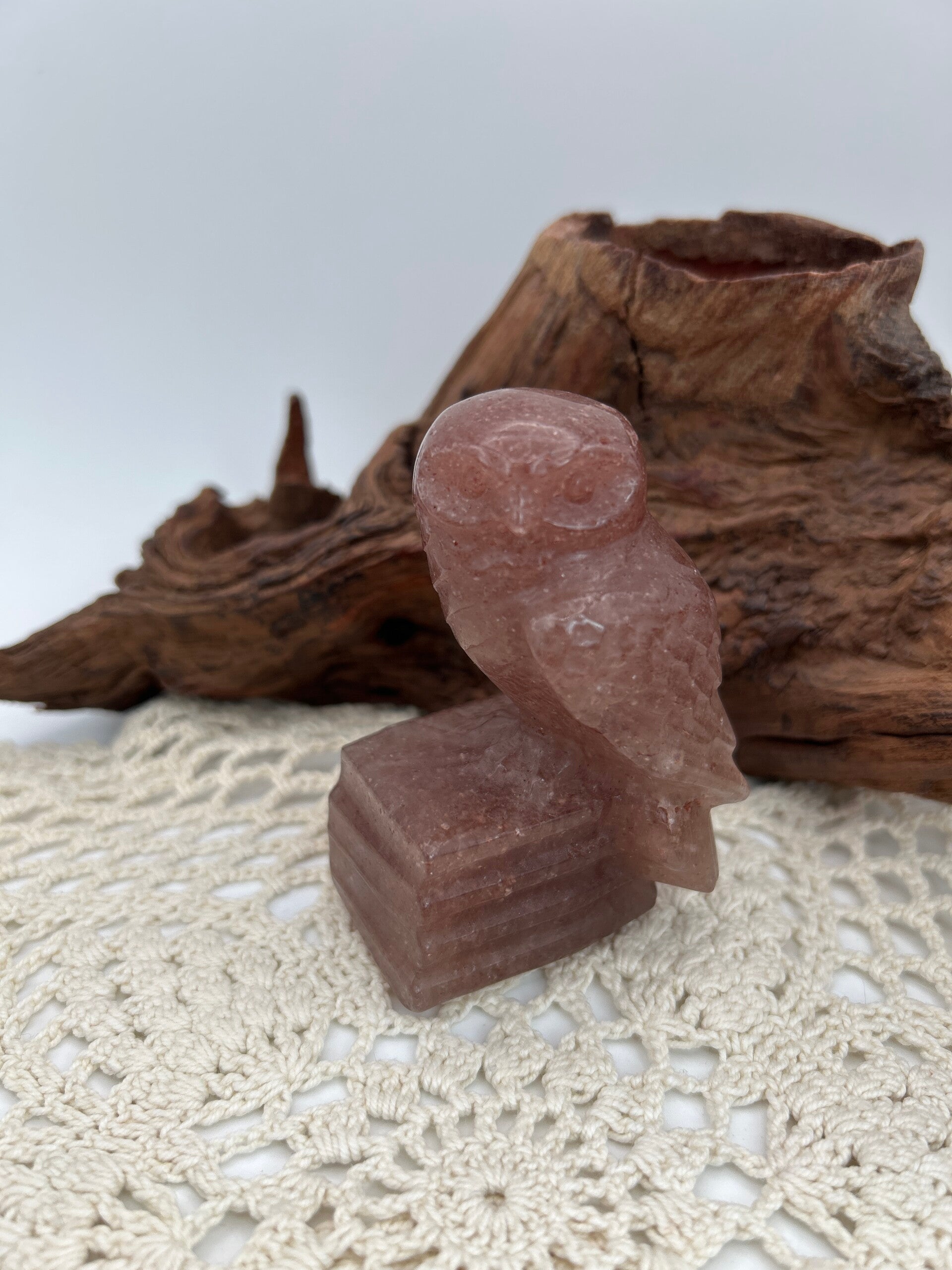 Eulen aus Erdbeerquarz, Rosenquarz und Bergkristall 8cm